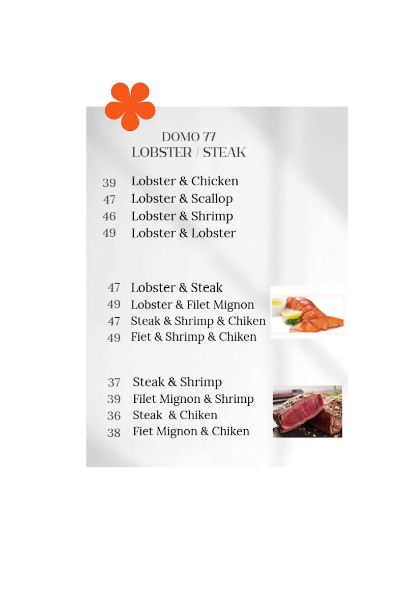 What truly sets Domo 77 apart is its emphasis on quality and freshness. Each dish is prepared with the utmost care, allowing the natural flavors to shine through. From the zesty hibachi shrimp to the rich, buttery texture of the filet mignon, every bite is a testament to their dedication to culinary excellence.